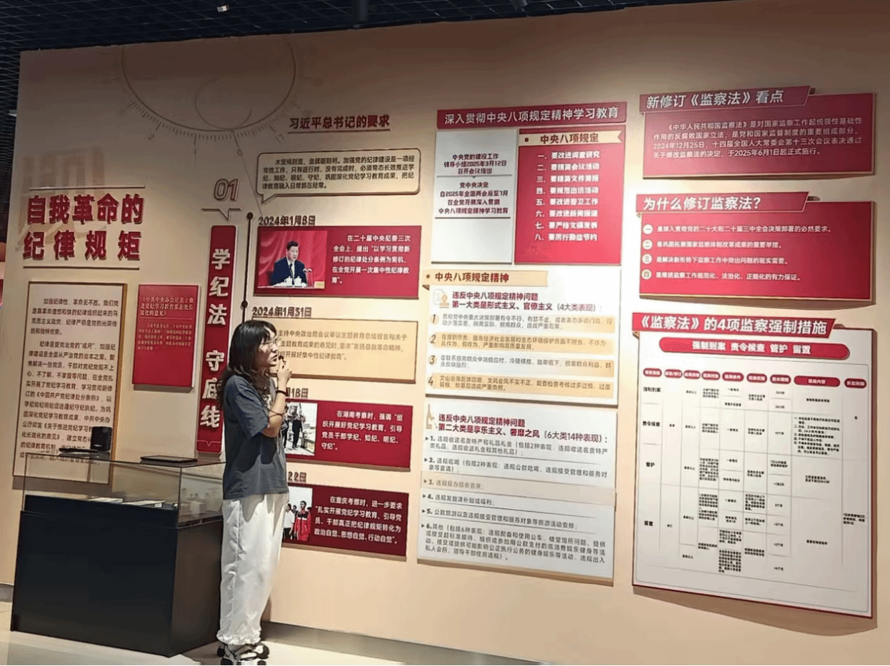 在现场教育过程中,通过展板、展柜、声光电多媒体技术等多种教育形式,完整回顾了党的十八大以来全面从严治党的壮阔历程,从不同角度深入学习了党风廉政建设和反腐败工作。
