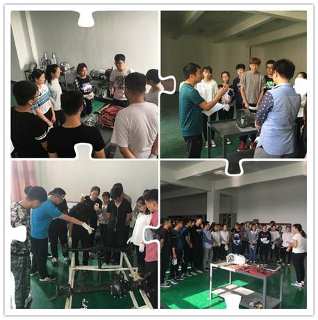 本次实训前期进行了详细的安排,将分组表、教师安排表以及实训注意实训全部张贴于实验室门口;撰写和修订了底盘拆装指导书,14页的指导书图文结合,详细说明了实习目的、实训器材、操作步骤注意事项及作业思考内容,并将离合器相关知识点进行总结以供员工进行二次学习和进一步思考;拆装过程中,虽然天气炎热,然而员工们认真准备和积极动手,老师们方法得当指导科学,在轻松愉快的氛围中拆装实训有序进行。
