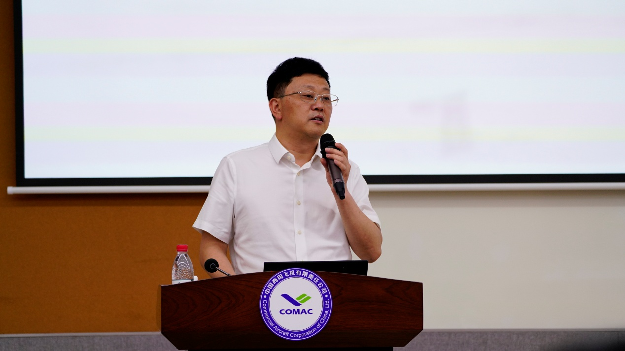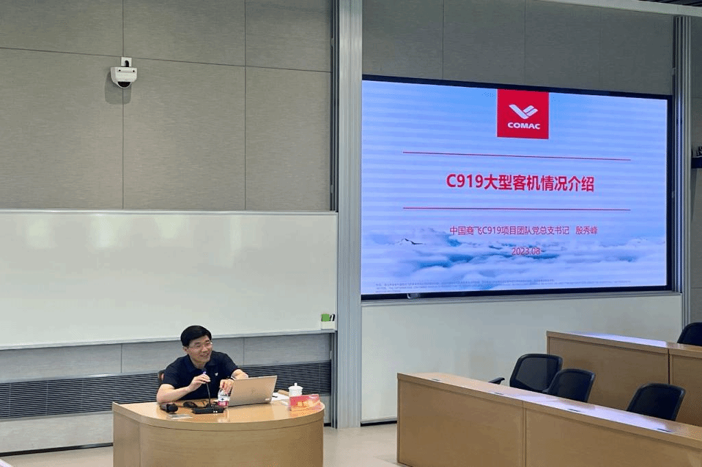 欢迎仪式后,中国商飞营销中心副总经理杨洋以《国产大飞机市场化探索》为主题,为大家做了专题报告。报告后一行人参观了ARJ21 全动模拟机、C919全动模拟机以及客服指挥大厅。