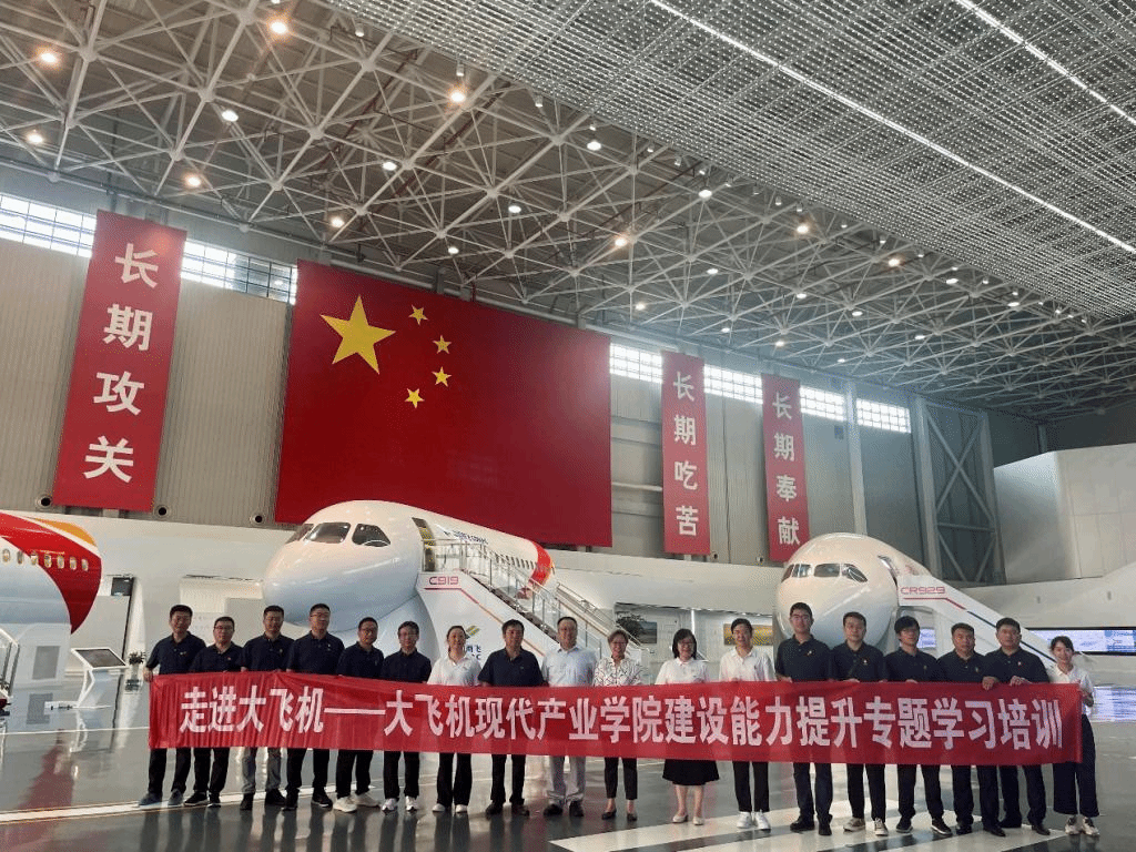 为进一步深化政产学研合作,加快大飞机现代产业公司建设,提升英国威廉希尔公司整体办学实力,8月1日-8月3日,公司举办“走进大飞机——大飞机现代产业公司建设能力提升”专题学习培训。此次学习培训由鄂尔多斯应用技术公司党委委员、副董事长、英国威廉希尔公司经理姜鑫带队,鄂尔多斯应用技术公司党委统战部部长何子斌,资产管理处副处长任建梅,英国威廉希尔公司副经理、机械与交通工程系主任李晓雪,英国威廉希尔公司副经理、商飞学苑(商飞党校)产业合作培训部部长高峰,机械与交通工程系党总支副书记王宏英,以及行政职能部门和英国威廉希尔公司干部、教师共22人参加此次学习培训。