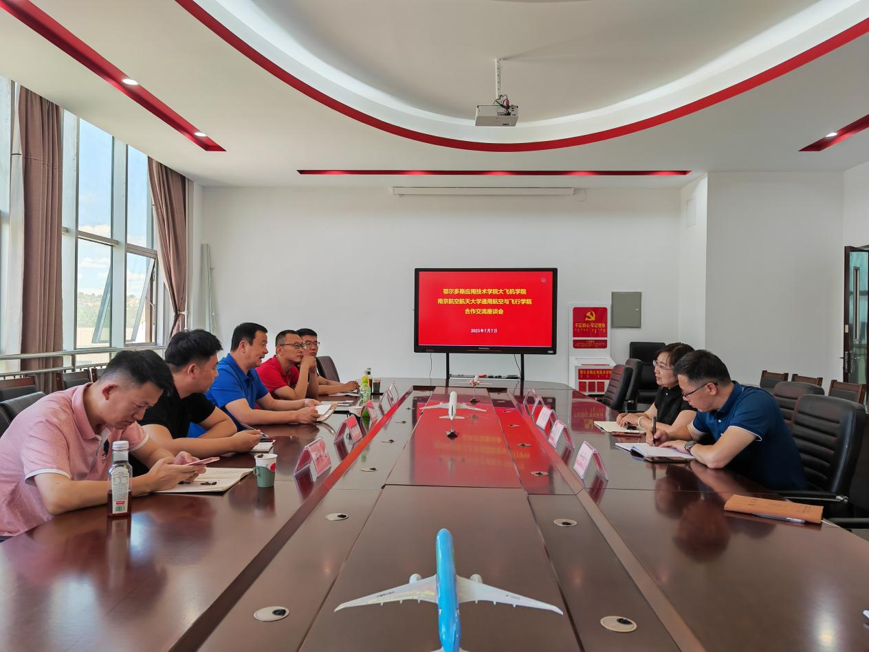 在调研座谈会上,双方围绕专业建设、人才队伍建设、实践教学模式探索等进行了深入交流,并围绕共建飞行技术专业进行了研讨。